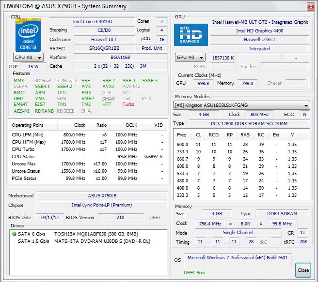 | Asus ASUSPRO P750LB-T2057G GeForce GT 740M, 4010U, Toshiba MQ01ABF050 | Acer Aspire E1-772G 54208G1TMnsk GeForce 820M, 4200M, WDC Scorpio Blue WD10JPVX-22JC3T0 | HP ProBook 470 G0-H6P56EA Radeon HD 8750M, 3632QM, HGST Travelstar 5K1000 HTS541075A9E680 | |