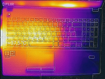 (+) Die maximale Temperatur auf der Oberseite ist 38 °C. Im Vergleich liegt der Klassendurchschnitt bei 34.3 °C (von 21.2 bis 62.5 °C für die Klasse Office).