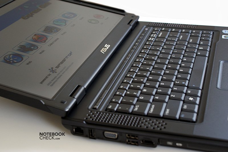 Die Anschlussausstattung lässt keine Wünsche offen. Sogar an einen digitalen Bild- und Tonanschluss hat Asus mit HDMI gedacht. Vier USB-2.0 Anschlüsse verteilen sich rund um das Gehäuse, drei davon befinden sich an der linken Seitenkante. Ebenso ist ein e-SATA-Anschluss für den schnellen Datenaustausch mit Peripheriegeräten wie externen Festplatten vorhanden.