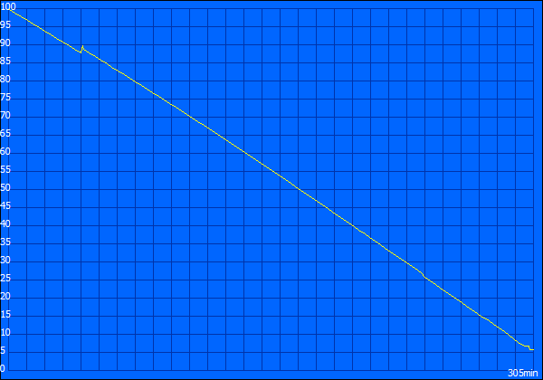 Die Laufzeiten schwanken je nach Last und Grafiklösung zwischen einem Minimum von nur 78 Minuten mit aktiver HD 5470, Höchstleistungsprofil, maximaler Helligkeit und eingeschalteten WiFi-Modulen und einem Maximum von etwa fünf Stunden, mit aktiver GMA HD, Energiesparprofil, abgeschalteten Verbrauchern und minimaler, fürs reguläre Arbeiten unbrauchbarer, Helligkeit.