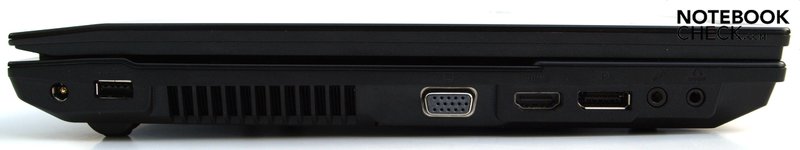 Die Schnittstellenanordung ist je nach Belegung weder für Linkshänder noch für Rechtshänder optimal. Alle Videoausgänge befinden sich an der linken Seite im mittleren bis vorderen Bereich. Rechts vorne wurde ein USB-2.0 Anschluss und der USB/eSATA-Kombi-Anschluss positioniert.