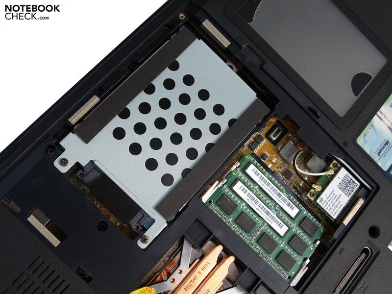 Die eingebauten vier Gigabyte Arbeitsspeicher werden in Kombination mit dem vorinstalliertem 64-Bit Betriebssystem effizient ausgenutzt. Wer die RAM Kapazität gerne selbst erweitern möchte, kann dies problemlos über eine Wartungsklappe an der Unterseite des Notebooks erledigen. Allerdings sind schon beide Bänke belegt, sodass zumindest eines der beiden RAM Module überflüssig wird.