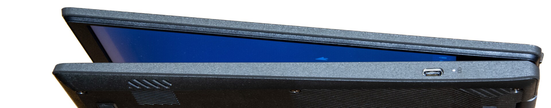Das Display wird durch eine umlaufende leichte Erhebung und einzelne Gummierungen vor Schäden beim Zuklappen geschützt. Wird das Chromebook auf einem Tisch aufgeklappt, schiebt sich das Display unter den Body und hebt diesen leicht an. Kleine Gummifüße schützen vor Schäden.