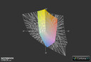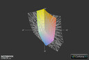 Der darstellbare Farbraum (in den Grafiken farbig dargestellt) lässt sich mit dem Tool X-Rite i1Display 2 (Hardware + Software) einordnen. Insgesamt ein durchschnittliches Panel, das für den Alltagsgebrauch ausreicht. Für eine professionelle Nutzung eignet sich dieses Gerät nicht. Für diesen Anwendungsbereich sollte mindestens beziehungsweise annähernd der sRGB-Farbraum dargestellt werden können.