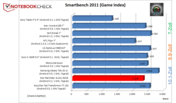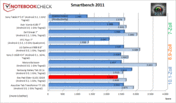 Der Quadrant Benchmark (CPU-, GPU-Test) ließ sich nicht ausführen. Im Smartbench 2011 (CPU-, GPU-Test) liegt der Slider im guten Mittelfeld. Dies gilt für den Productivity- als auch für den Game-Index. Letzterer fällt bei genauer Betrachtung leicht hinter die Vergleichs-Tegra-2-Systeme zurück. Samsungs Galaxy S2 Smartphone mit 2 x 1.2 GHz Exynos 4210 CPU kommt aktuell auf zirka 3.600 Game-Index-Punkte. Das LG Star liegt bei 3.115. Die Entwicklung steht also nicht still, Tegra 2 ist bereits seit fast einem Jahr am Markt, und Nvidia schraubt am Nachfolger Kal-El.