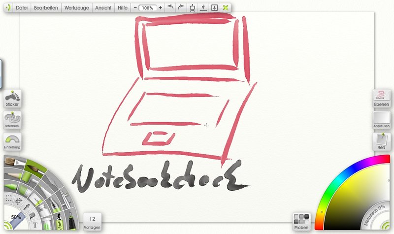 Für besonders genaue Aktionen bietet sich die Stifteingabe an. Besonders bei langen Ordnerlisten trifft man mit dem dicken Finger schon mal das falsche Objekt. Das geht mit dem Stift und dazugehörigem Fadenkreuz besser. Skizzen, Zeichnungen aber auch handschriftliche Notizen sind die Aufgaben, die man aber hauptsächlich mit dem Stift abarbeiten wird. Die Genauigkeit der Stifteingabe ist sehr hoch und braucht sich nicht vor Convertibles wie dem Dell XT2 oder HP`s 2740p zu verstecken. Selbst am Rand haben wir nur minimale Abweichungen festgestellt, die unter 1 mm liegen. Mit einer ruhigen Hand könnte man sogar Freistellarbeiten durchführen. Zeichnen, Talent vorausgesetzt, ist ebenfalls kein Problem. Die Handschrifterkennung von Windows 7 ist lernfähig und ermöglicht es problemlos, handschriftlich Notizen in Word- oder Open Office- Dokumente einzufügen.