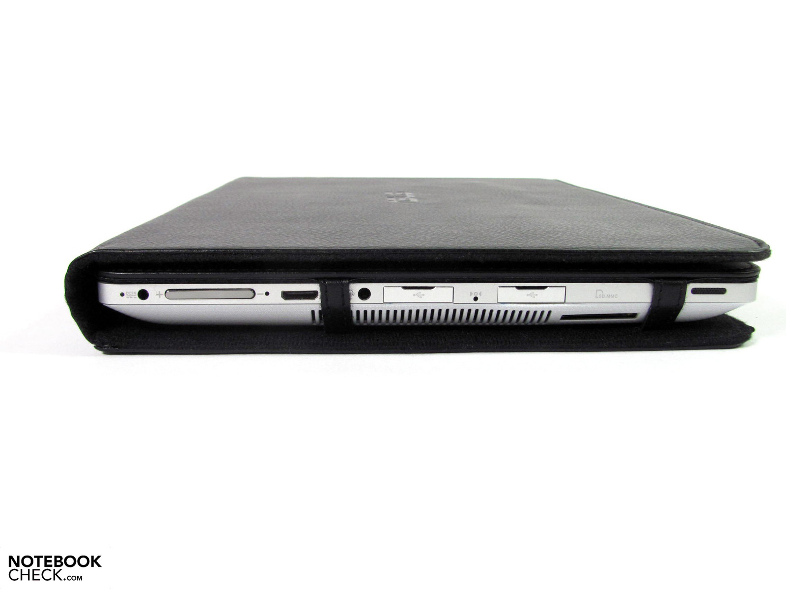 Die ermittelte Transferrate beträgt per USB 2.0 24,7 MB/s. Das ist zwar im Vergleich mit ausgewachsenen Notebooks ein nur unterdurchschnittlicher Wert, für ein Tablet aber sehr ansehnlich. Der Cardreader liefert übliche 16,8 MB/s (SD-Card). Die Anschlüsse befinden sich komplett auf der linken Seite, wobei uns insbesondere der große Abstand zwischen den USB Ports gefällt. So sind selbst beide Schnittstellen mit besonders breiten USB-Erweiterungen gleichzeitig nutzbar, ohne dass ein daneben liegender Anschluss verdeckt würde. Andererseits ist der Abstand aber auch nicht zu groß für Geräte mit Y-Kabel, wie zum Beispiel externe DVD-Laufwerke. Per Mini-HDMI lassen sich Fernseher und externe Bildschirme digital ansteuern.