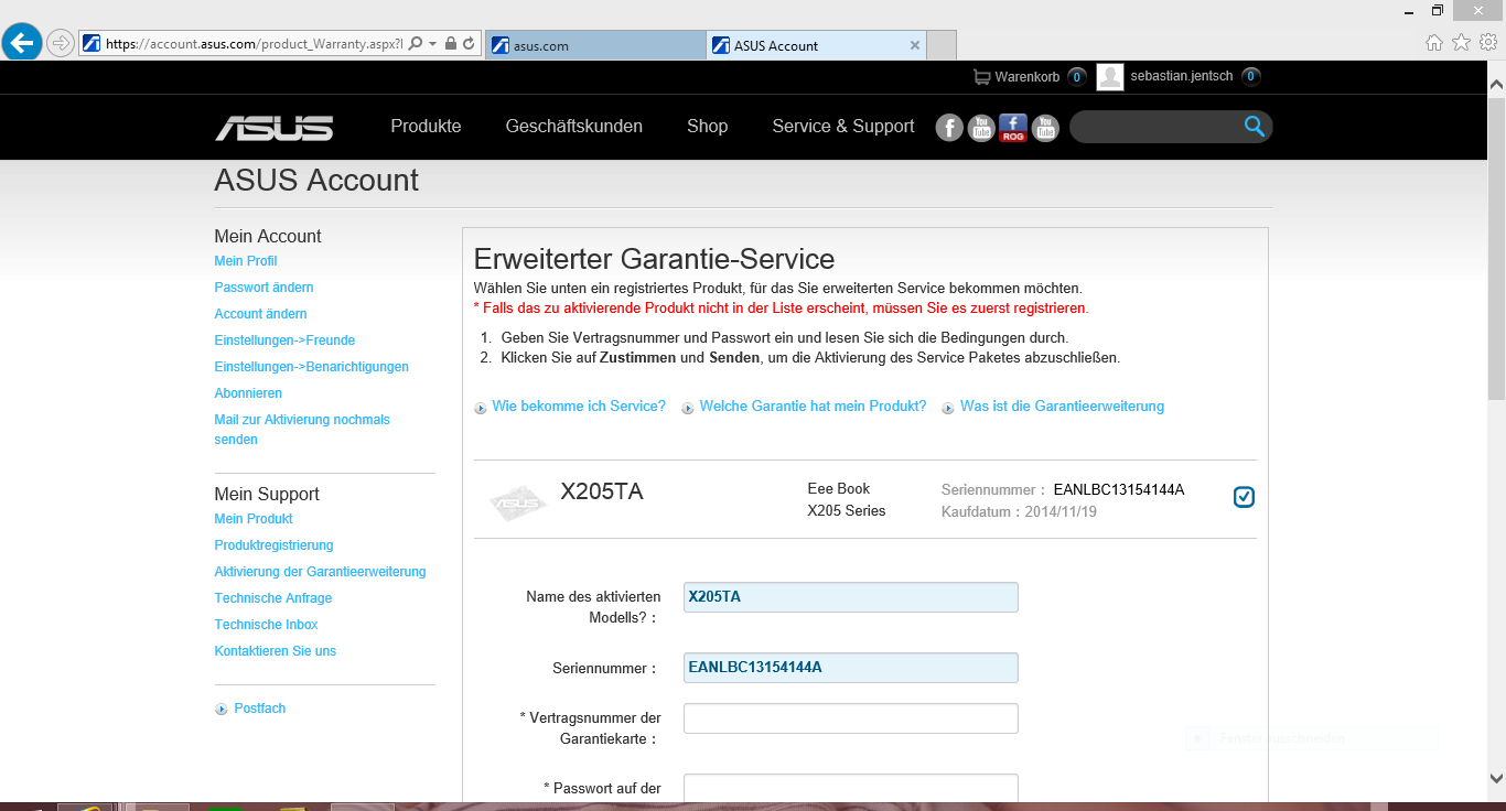 Asus gewährt eine Herstellergarantie von lediglich einem Jahr, wobei das Gerät auf Kosten von Asus abgeholt wird (Pickup&Return). Das Gerät sollte nach dem Kauf registriert werden, wodurch dann auch technischer Support aktiviert wird. Die Zeitspanne kann durch Kauf einer Zusatzgarantie um ein Jahr verlängert werden (Notebook-Garantieerweiterung von 1 Jahr auf 2 Jahre: 49 Euro).