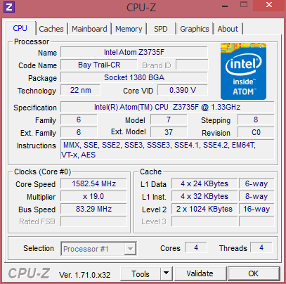 Der Intel Atom Z3735F (1,33 bis 1,83 GHz) unterscheidet sich von den Pentium, Celeron (N2930 Quadcore 1,8-2,2 GHz, TDP 7,5 Watt) und AMD APUs (E1-2500) in den Konkurrenten durch einen geringen Basis-Takt und eine sehr niedrige TDP von <4 Watt. Der Celeron N2830 (TDP 7,5 W) ist z. B. ein Dualcore mit 2,1 bis 2,4 GHz. AMDs E1-2500 (Dual-Core-SoC) hat sogar gar keinen Turbo und eine hohe TDP von 15 Watt. Die Intel Atom SoC wird meistens bei Tablets bzw. Convertibles eingesetzt, die Verwendung im Netbook wie unserem Testgerät ist eher eine Ausnahme.