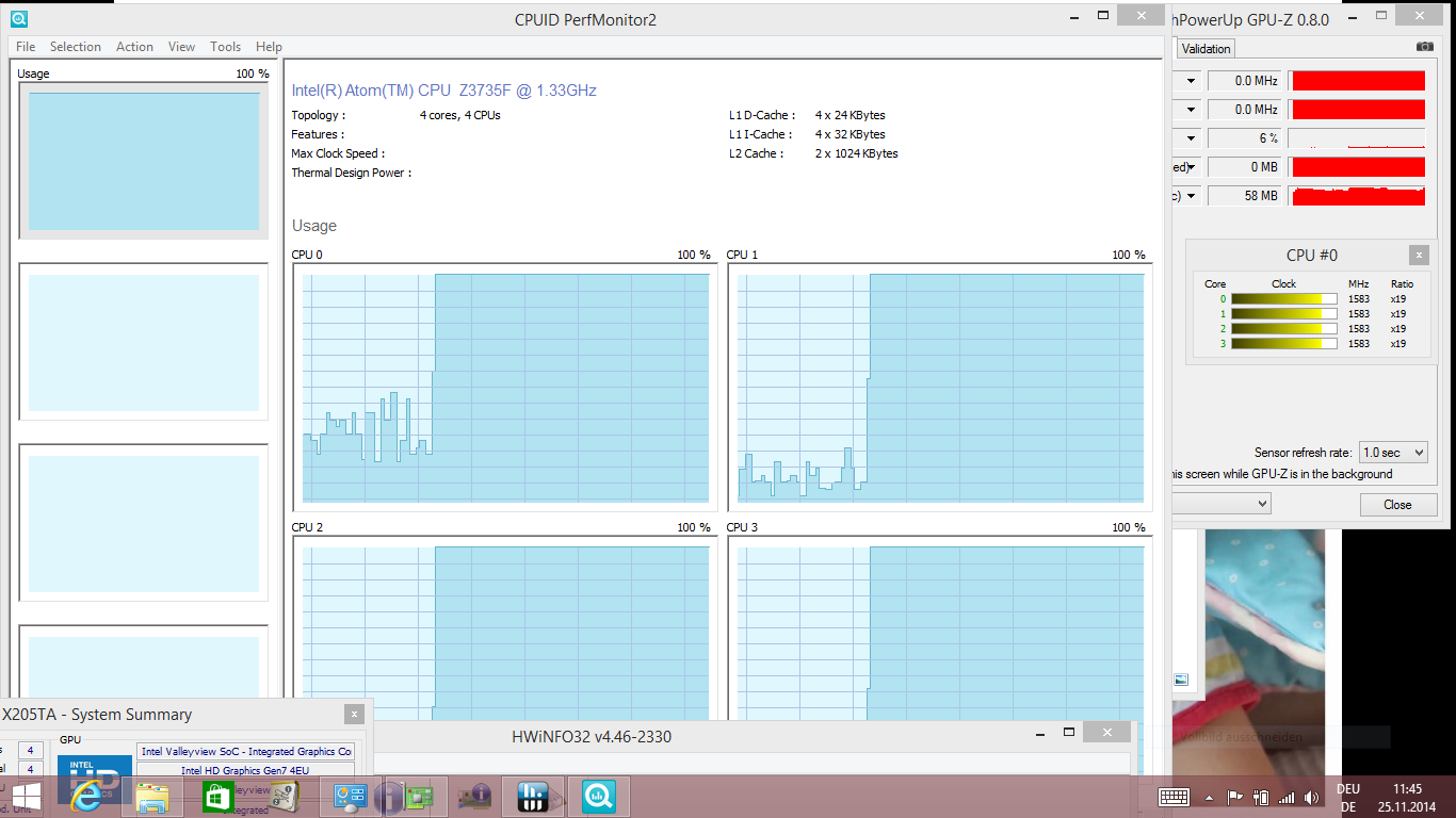 Der Intel Atom Z3735F (1,33 GHz) gehört zur Klasse der Bay Trail-T SoCs und wurde mit seiner geringen Energieaufnahme für Tablets produziert. Bei den meisten Low-End Convertibles oder Netbooks kommt diese Plattform heute zum Einsatz, wobei es kleine Differenzierungen zwischen den Atom Modellen sowie den Celeron- und Pentium Varianten gibt. Das EeeBook X205TA prädestiniert sich damit für wenig rechenintensive Aufgaben, es kann aber sehr gut mit parallel ausgeführten (einfachen) Anwendungen umgehen.