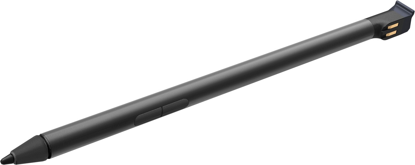 Der kleine integrierte Digitizer-Stift mit Akku (wird im Gehäuse geladen) dient als alternative Bedienungsmethode zum Touchscreen. Es handelt sich um einen typischen Wacom-AES-Stift mit Druckstufen, ideal zum Zeichnen und Schreiben. Der Stift hat zwei Tasten, die sich allerdings nur schwer drücken lassen. Zudem ist der Stift sehr dünn, um in das schlanke Gehäuse zu passen, was die Nutzung erschwert.