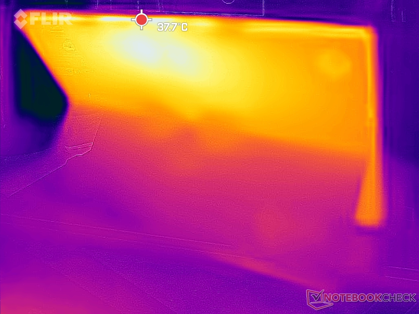 (+) Auf der Unterseite messen wir eine maximalen Wert von 37.8 °C (im Vergleich zum Durchschnitt von 36.8 °C).