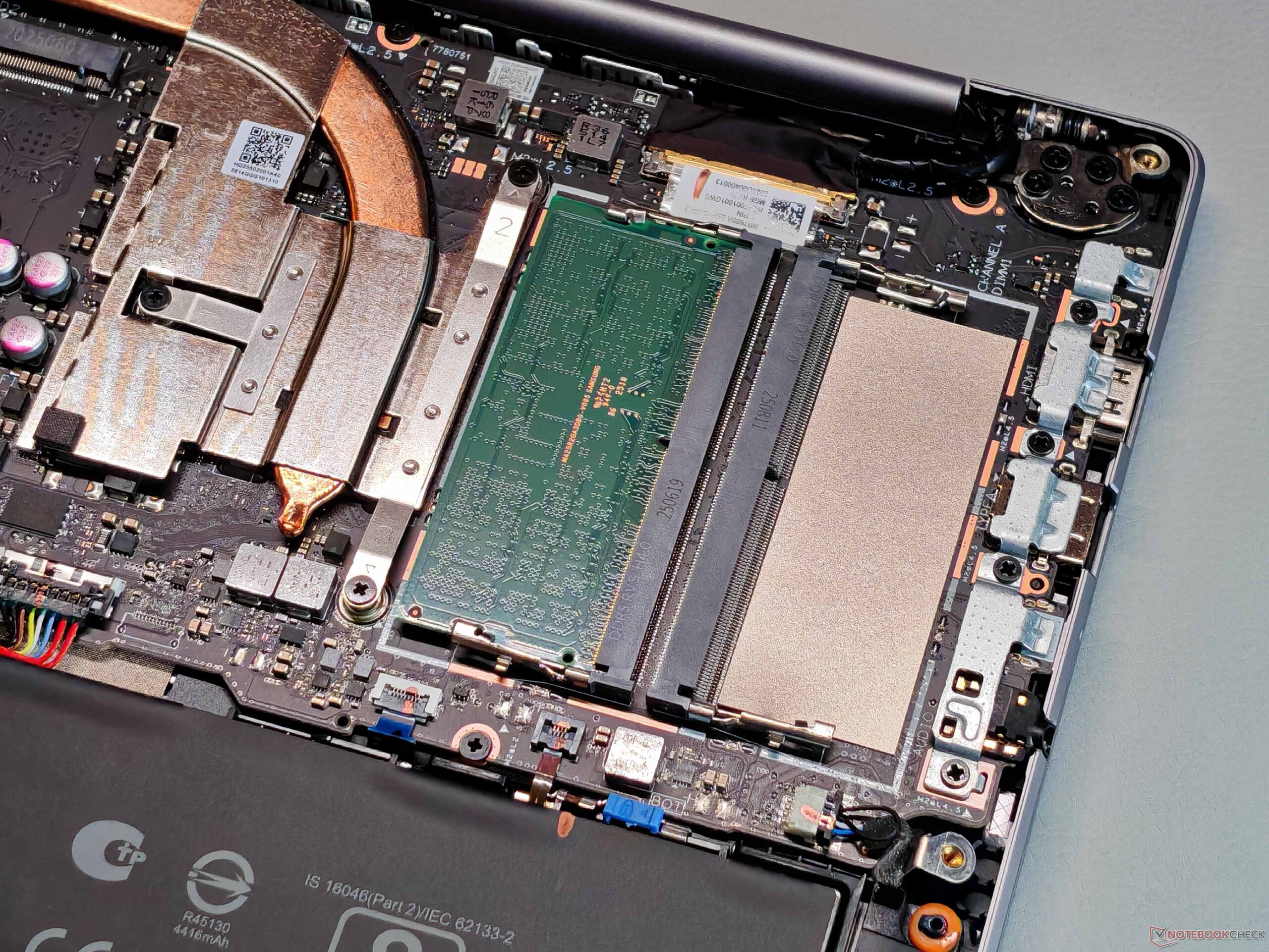 Anschlüsse (inkl. Ethernet) stehen ausreichend zur Verfügung, allerdings muss man auf USB 4.0/Thunderbolt und einen Kartenleser verzichten. Das Wi-Fi-7-Modul erreicht sehr gute und stabile Transferraten. Die 1080p-Webcam (inkl. mechanischer Blende und IR-Sensor) macht keine besonders gute Aufnahmen.