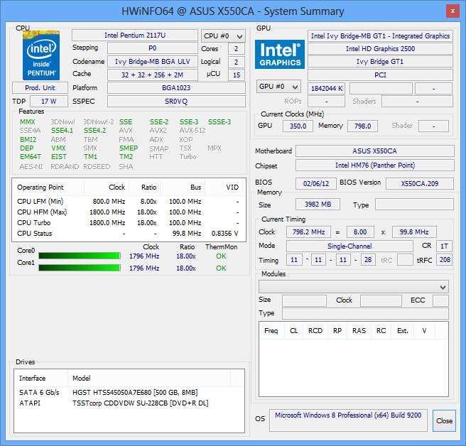 | Asus F550CA-XX078D HD Graphics (Ivy Bridge), 2117U, Hitachi Travelstar Z5K500 HTS545050A7E680 | Lenovo G500s-59367693 HD Graphics (Ivy Bridge), 2020M, Seagate Momentus Thin ST500LT0 12-9WS142 | Toshiba Satellite C50D-A-10E Radeon HD 8330, A4-5000, Toshiba MQ01ABF050 | |
