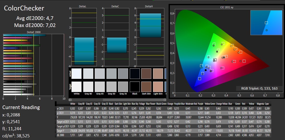 ΔE ColorChecker Calman: 4.7 | ∀{0.5-29.43 Ø4.78}