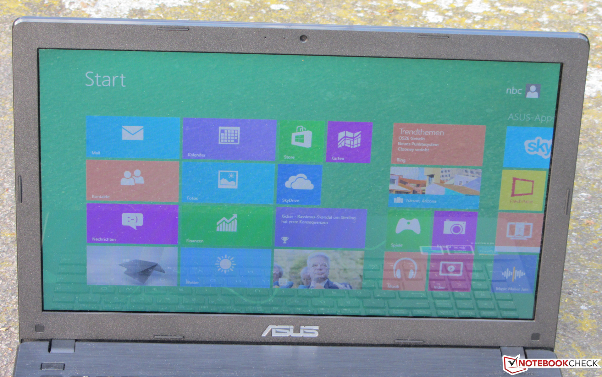 Asus verbaut ein glänzendes 15,6-Zoll-Display, das mit einer nativen Auflösung von 1.366 x 768 Bildpunkten arbeitet. Mit einer durchschnittlichen Helligkeit von 240,7 cd/m² weiß der Bildschirm durchaus zu gefallen. Im Niedrigpreissegment sind wir schlechtere Werte gewohnt. Nicht zu gut sieht es bei Kontrast (301:1) und Schwarzwert (0,8 cd/m²) aus. Hier erwarten wir heutzutage mehr.