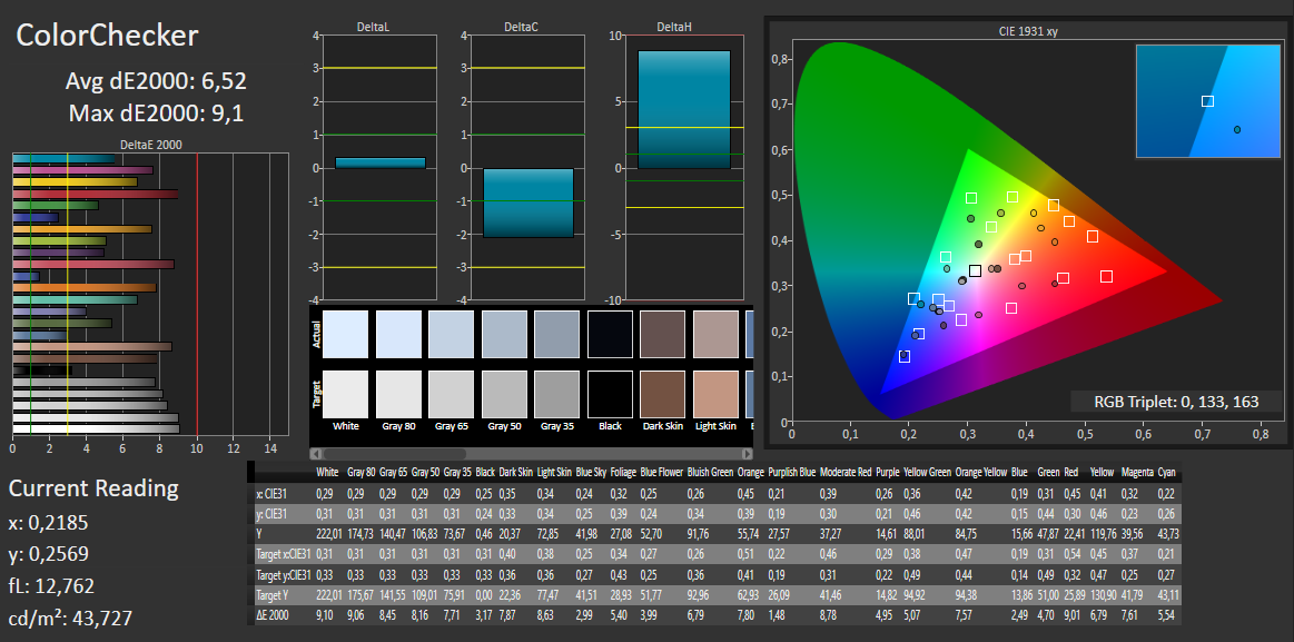 ΔE ColorChecker Calman: 6.52 | ∀{0.5-29.43 Ø4.78}