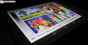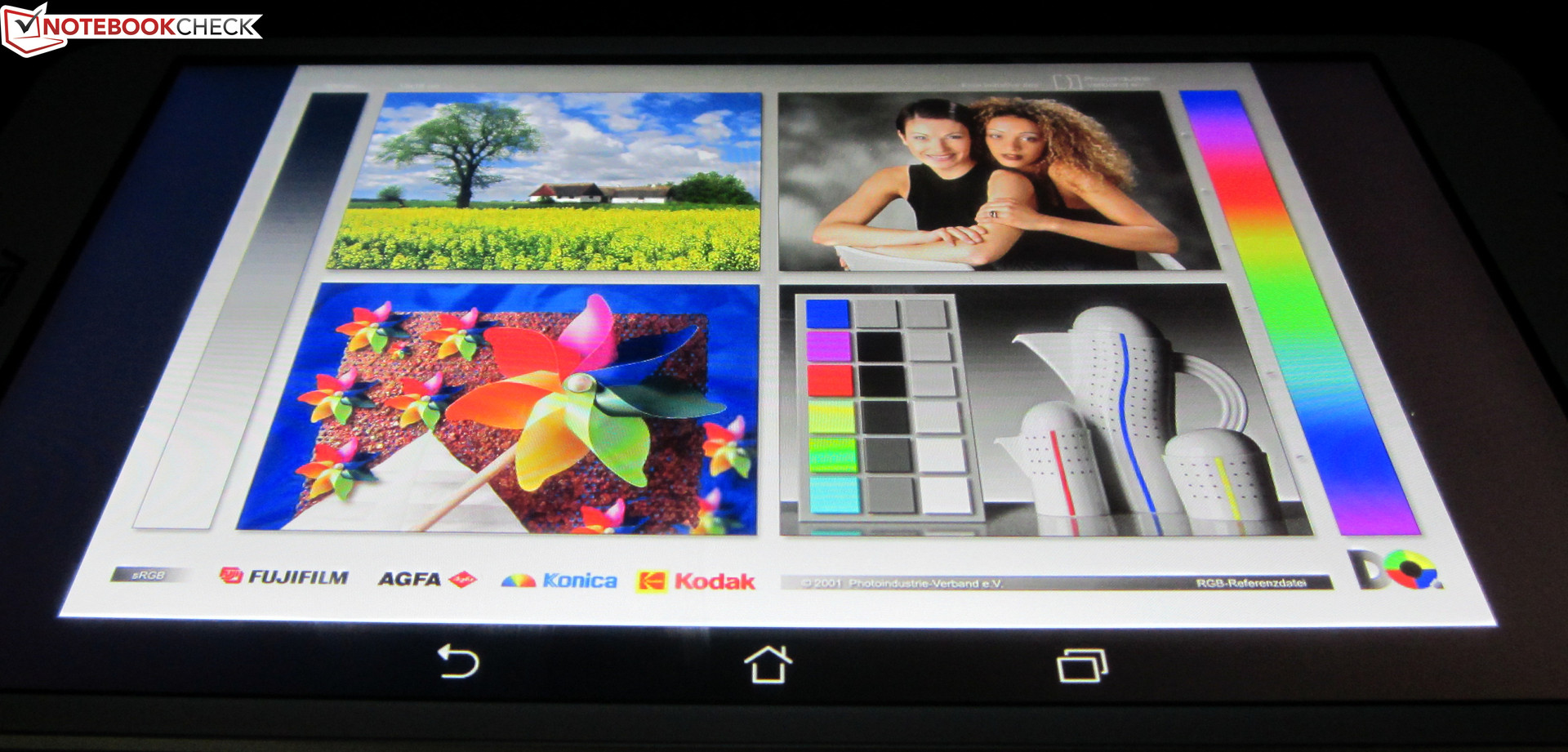 Mit einer Luminanz von durchschnittlich 351,9 cd/m² erzielt das Asus-Tablet einen sehr guten Helligkweitswert. Dabei passt auch die Ausleuchtung, die sich sehr gleichmäßig über den Bildschirm verteilt (92 Prozent). Ebenfalls gute Resultate sind der niedrige Schwarzwert von 0,31 cd/m² und das hohe Kontrastverhältnis von 1.165:1. Beide Werte sind jeweils noch etwas besser als beim Asus Fonepad 7 FE375CG, das auf der gleichen Hardware-Plattform basiert.