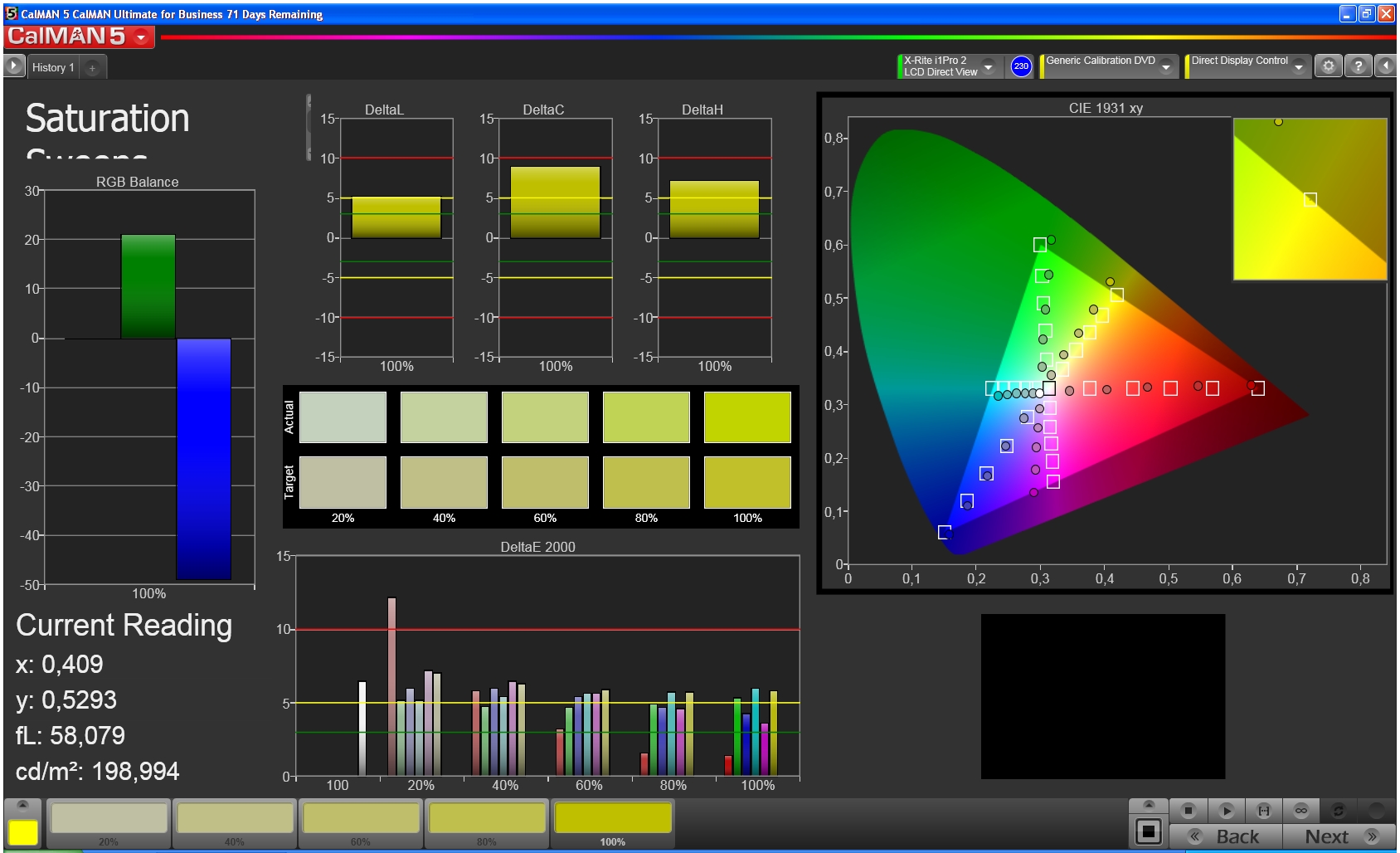 Auch die Farbkalibrierung des Panels ist gut gelungen. Sichtbare Abweichungen gibt es kaum. Lediglich die Rottöne weisen einen leicht erhöhten DeltaE auf und wirken dadurch etwas dunkler. Bei den Graustufen ist ein minimaler Grünstich zu erkennen, welcher im alltäglichen Gebrauch jedoch nicht auffällt.