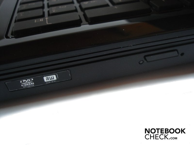Die Vorderseite des G60VX wartet mit einem Infrarot-Empfänger und einem Schieberegler zu Aktivierung respektive Deaktivierung des integrierten WLANs sowie Bluetooths auf. Auf der rechten Seite folgen schließlich drei Soundanschlüsse (Kopfhörer-Ausgang, Mikrofon-Eingang und Line-Out), zwei USB 2.0-Ports (insgesamt sind also vier USB-Ports verfügbar) und der obligatorische DVD-Brenner.