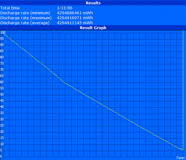 Der verwendete Lithium-Ionen-Akku (75 Wh) gibt sich angesichts der energiehungrigen Komponenten redlich Mühe, die Laufzeiten des G73 im akzeptablen Rahmen zu halten. Zumindest im Readers Test von Battery Eater gelingt ihm das bei minimaler Helligkeit und maximalen Energiesparoptionen ausgesprochen gut. Mit 2 Stunden und 39 Minuten ist ein angemessener Ausflug abseits des Stromnetzes realisierbar. Dreht man die Helligkeit auf den Maximalwert und surft bei mittleren Energiesparoptionen drahtlos im Internet, sinkt die Laufzeit auf immer noch passable 1 Stunde und 58 Minuten. Bei DVD-Wiedergabe büßt das G73 nur moderat an Laufzeit ein und kommt auf 1 Stunde und 36 Minuten. Lange Filme können damit zwar nicht vollständig angeschaut werden, für die ein oder andere Folge der eigenen Lieblingsserie reicht es aber allemal. Doch zurück zur Akkulaufzeit: Selbst unter Last (Classic Test von Battery) konnte sich das Notebook bei deaktivierten Energiesparoptionen mit 71 Minuten über einer Stunde halten.