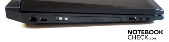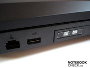 Bei vielen angeschlossenen Kabeln können mit der vorliegenden Anschlussanordnung sowohl Links- als auch Rechtshänder in ihrer Bewegungsfreiheit eingeschränkt werden. Zudem kann das optische Laufwerk beim Öffnen leicht mit Kabeln kollidieren, was auf Dauer durchaus nerven kann. Von der Anschlussvielfalt waren wir derweil auch mehr als enttäuscht, denn wie Sie vielleicht bemerkt haben, fehlen sowohl ein ExpressCard-Einschub wie auch ein eSATA- sowie Firewire-Anschluss. Diese gehören bei Gaming-Notebooks inzwischen eigentlich fast schon zum Standard und dürften gerade angesichts des Preises von 1400 Euro als selbstverständlich angesehen werden.