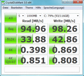 Die Performance der Seagate Momentus XT ST95005620AS (7200 U/Min) spricht für sich, eine Übertragungsrate von 82.3 MB/Sek ist ebenso überdurchschnittlich gut wie eine sequentielle Leserate von 94.96 MB/Sek und eine sequentielle Schreibrate von 98.26 MB/Sek (System-SSH). Um noch mehr Leistung herauszuholen, hätte Asus die Festplatten allerdings als RAID-0-Verbund einrichten müssen.