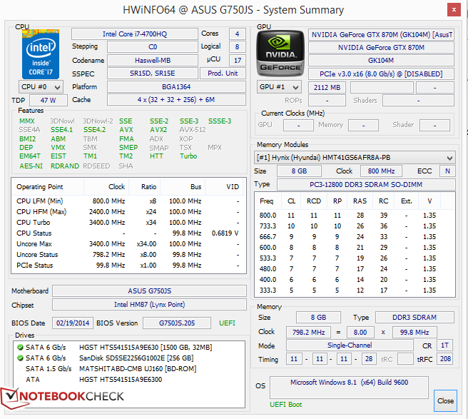 | Asus G750JS-T4064H GeForce GTX 870M, 4700HQ, SanDisk SD5SE2256G1002E | One K73-4N GeForce GTX 870M, 4800MQ, Samsung SSD 840 EVO 500GB | MSI GT70 2PE-890US GeForce GTX 880M, 4800MQ, HGST Travelstar 7K1000 HTS721010A9E630 | Schenker XMG P704 GeForce GTX 880M, 4910MQ, Crucial M500 480 GB CT480M500SSD3 mSATA | |