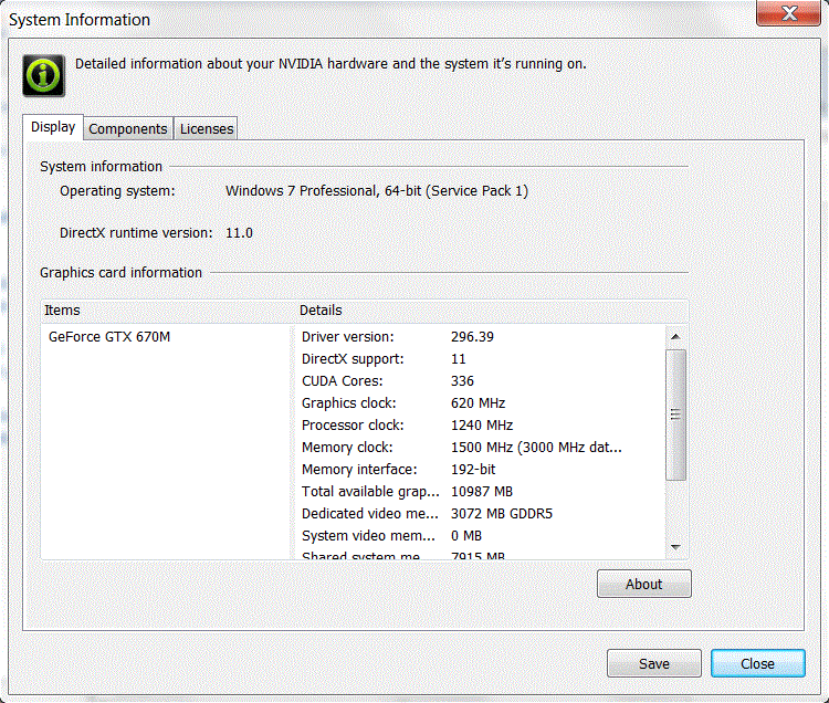 Im Vergleich zur knapp 20 % stärkeren GTX 675M ist die GTX 670M etwas niedriger getaktet: Statt mit 620/1240/1500 MHz (Kern/Shader/Speicher) läuft die Grafikkarte mit 598/1196/1500 MHz (die Tools lesen falsche Raten aus). Weitere Unterschiede sind die geringere Shaderanzahl (336 vs. 384 CUDA-Cores) und das schmalere Speicherinterface (192 vs. 256 Bit). Üppig: Asus verwendet ein Modell mit 3072 MByte GDDR5-VRAM (1536 MByte @ One M73-2N).