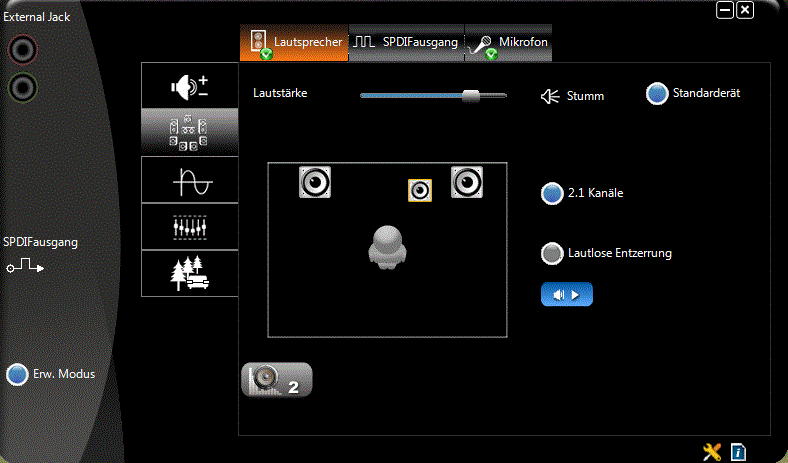 Angefangen beim Subwoofer, der erst dann funktionierte, als wir im „VIA HD Audio Deck“ die Lautsprecher auf „2.1 Kanäle“ stellten (erweiterter Modus). Dummerweise gab der Subwoofer dann nicht nur den Bass, sondern auch die restlichen Töne wieder. Folge: eine linkslastige Wiedergabe.