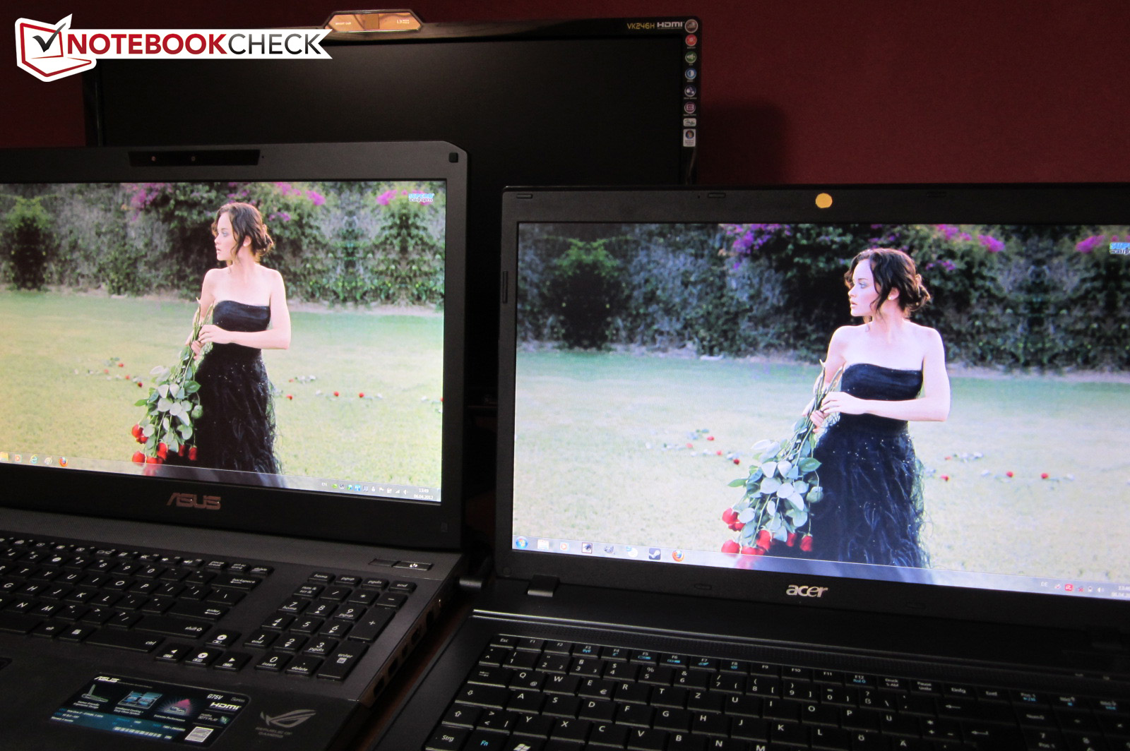 Prima: Asus verwendet das gleiche Full-HD-Panel, das schon bei der 3D-Variante des G74SX zum Einsatz kam (LGD02C5). 1920 x 1080 Pixel sind im High-End-Bereich ideal und ermöglichen ein komfortables Arbeiten. Qualitativ macht dem entspiegelten Display so schnell keiner etwas vor. Im direkten Vergleich mit einem ordinären 08/15-Panel (siehe Bild) werden die Unterschiede besonders deutlich.