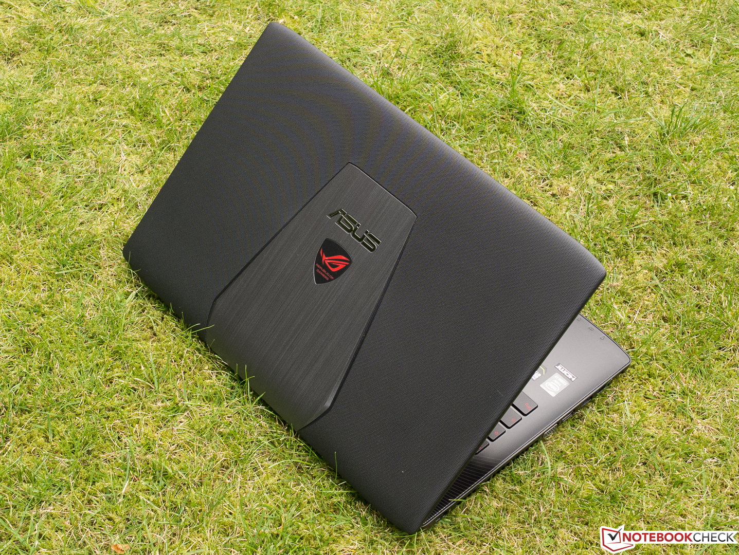 Asus bleibt seiner ROG-typischen, futuristischen Formensprache treu und präsentiert ein einwandfrei, wenn auch nicht perfekt verarbeitetes Gehäuse in der bekannten schwarz-roten Farbkombination, wobei die schick strukturierte, griffige Deckelrückseite eher dunkelgrau-anthrazitfarben ausgefallen ist. Leider sind sämtliche Oberflächen bis auf den mattschwarzen Bildschirmrahmen sehr empfänglich für teilweise (Deckel) schwer zu entfernende Fingerabdrücke. Weitere optische Akzente des in den Augen des Testers durchaus schicken Gehäuses setzen das aufgedruckte Muster über der Tastatur sowie das auffällige, hellgraue Inlay auf der Deckelrückseite mit seinem Brushed-Metal-Finish und dem beleuchteten Asus-ROG-Wappen in der Mitte.