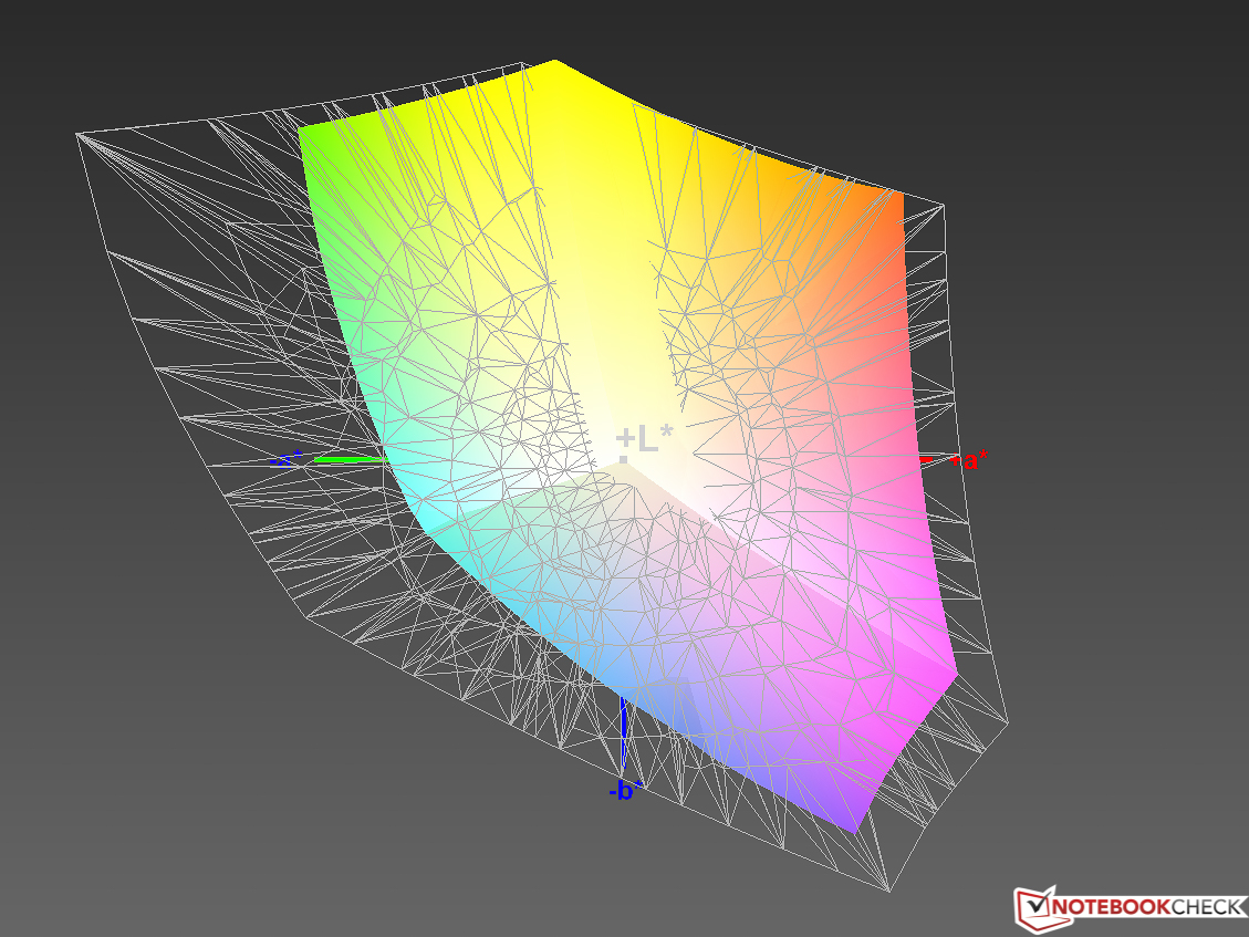 Zu den Konkurrenten: Obwohl die Helligkeit des HP Envy 15-k203ng mit rund 300 cd/m2 völlig in Ordnung ist, führt der viel zu hohe Schwarzwert zu einem sehr bescheidenen Kontrast von nur 381:1. Da das TN-Panel auch noch die mit Abstand schlechteste Farbtreue und einen viel zu hohen Gammawert (Windows-Soll: 2,2) aufweist, belegt es innerhalb des Test-Trios souverän den letzten Platz. Der IPS-Bildschirm des Lenovo IdeaPad Y50-70 ist zu dunkel, weiß in Sachen Schwarzwert, Kontrast und Farbtreue zu überzeugen, hat aber nur einen kleinen Farbumfang.