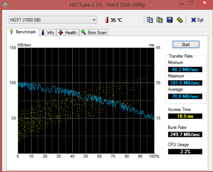518 MB/s beim sequenziellen Lesen sind für eine einzelne SSD ein sehr guter, aber nicht herausragender Wert. Geht es um das Einlesen kleiner, auf einer HDD auf den Plattern verteilter Datenblöcke, kann das Asus die Erwartungen an eine moderne SSD mit 30 MB/s voll erfüllen. Nicht ganz den Erwartungen entspricht hingegen die etwas lahme zusätzliche 1-TB-Festplatte.