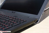 In der GL552 Serie wurde das Design - verglichen mit dem vorigen GL551 - generalüberholt, obwohl die äußeren Merkmale vorwiegend ähnlich sind. Dazu gehören abgerundete Ecken und Kanten und die Verwendung von glattem Kunststoff ohne Aluminium-Oberflächen. Anders als bei unserem vorigen Testgerät ist die dicke Basiseinheit sehr fest, und unter Verwindungskräften wird kein Knarren hörbar. Druck im zentralen Tastaturbereich verursacht ein nur minimales Nachgeben. Der Bildschirmdeckel ist dagegen schwächer und lässt sich bei mäßiger Kraftanwendung leichter verwinden und eindellen und knarrt dabei. Trotzdem sind die beiden Scharniere stark und wippen beim Tippen nur minimal.
