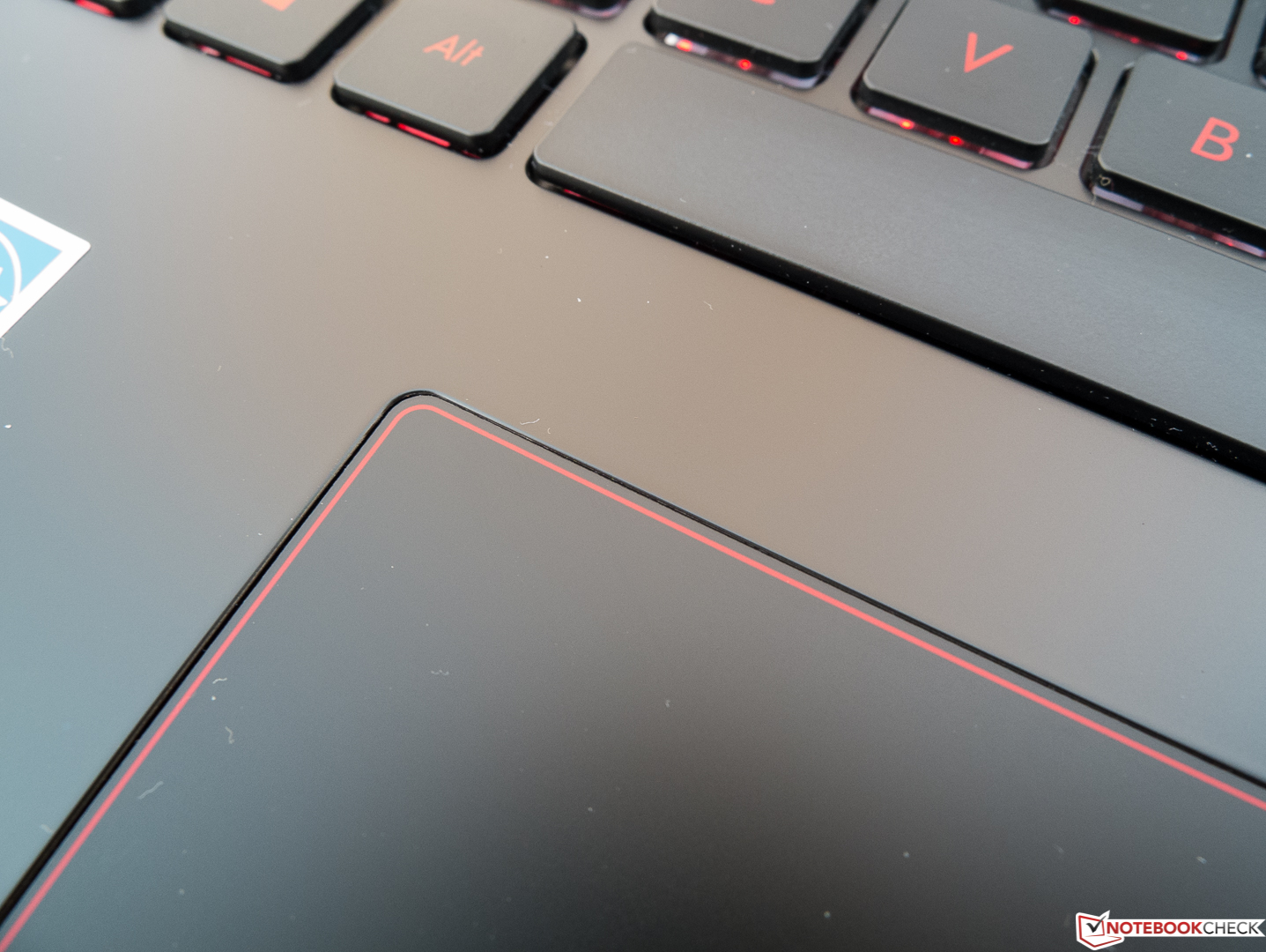 Insgesamt macht das Keyboard einen soliden und wertigen Eindruck, wozu auch die rote, gleichmäßige und wieder in drei Stufen dimm- oder natürlich auch abschaltbare Beleuchtung beiträgt. Geringfügig eindrücken kann man es nur mit unrealistischem Kraftaufwand. Die Zeichentasten scheinen eine minimale konkave Wölbung aufzuweisen, alle anderen Tasten sind flach und rutschhemmend beschichtet. Bei deaktivierter Beleuchtung heben sich die eigentlich einwandfreien, dunkelroten Beschriftungen nicht optimal vom schwarzen Hintergrund ab. Dank lichtdurchlässiger Ränder lassen sich die WASD-Keys besonders schnell identifizieren. Der Tastenhub ist nicht mit dem normaler Desktop-Keyboards vergleichbar, für den Geschmack des Testers aber ausreichend. Der hätte sich wie beim GL552JX auch hier einen etwas härteren Anschlag gewünscht, aber das ist Geschmackssache. Keine Probleme gab es mit dem gut abgestimmten Druckpunkt und der zurückhaltenden Geräuschentwicklung.