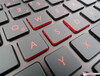 Recht gelungen und vor allem stylish finden wir die gleichmäßig rote, in drei Stufen dimmbare Tastaturbeleuchtung, die den Kontrast der roten Tastenbeschriftungen auch bei guten Lichtverhältnissen verbessert. Der Hubweg fällt mittellang, aber ausreichend aus, der Druckpunkt ist gut spürbar, der Anschlag recht weich und zumindest bei den Tasten in Standardgröße auch sehr leise, während einige der größeren etwas klappern. Eindrücken ließ sich das Keyboard nur mit viel Kraft und wenn man es darauf anlegte; in der Praxis gab es keine Schwierigkeiten.