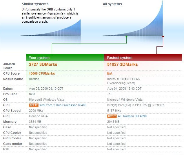 | PCMark Vantage Result | 3119 Punkte | |