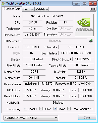 Doch für höhere Leistungen im grafischen Bereich ist außerdem ein Vertreter aus dem Hause Nvidia verbaut worden. Hier setzt Asus auf die Nvidia GeForce GT 540M die dank Optimus automatisch im Bedarfsfall aktiviert wird. An Arbeitsspeicher stehen rund 4096 MB DDR3-RAM (1333 Mhz) zur Verfügung, die Western Digital Festplatte bietet rund 640 GByte Speicherkapazität bei 5400 Umdrehungen pro Minute. Mit diesen Eckdaten haben wir es mit einer klassischen aktuellen Multimediakonfiguration zu tun die eine Vielzahl von Anwendungsgebieten, von Office bis Gaming, von der Wiedergabe von Inhalten bis zu deren Erstellung. Wie es um die Performance im Detail steht sehen wir uns folgend im Detail an.