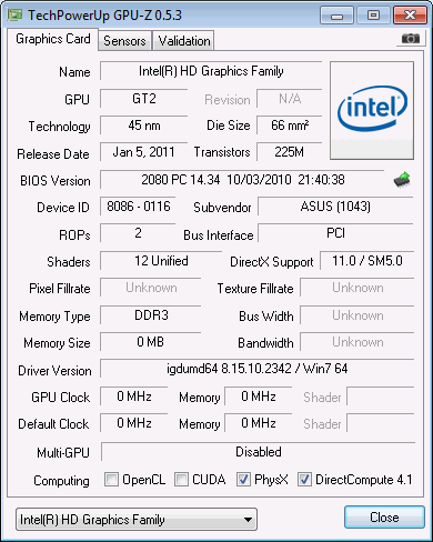 Rechenherz des Asus K53SV ist Intels Doppelkernprozessor Core i5 2410M. Die Sandy Bridge CPU hat einen Basistakt von 2,3 GHz und kann durch Turbo Boost auf bis zu 2,9 Ghz erhöht werden. Im 64-Bit Prozessor mit einem TDP von 35 Watt integriert ist auch der Grafikchip HD Graphics 3000.