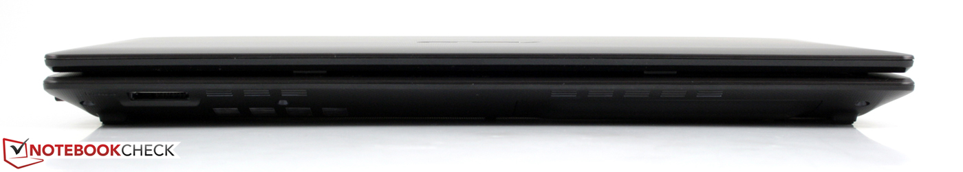 USB-Steckplätze gibt es insgesamt nur drei Stück. Die zwei links angebrachten Ports liegen zu dicht beieinander. Breite USB-Sticks oder gebogene Stecker stören sich gegenseitig. Schade ist, dass die vertieft sitzenden Scharniere eine (theoretisch mögliche) Steckplatz-Nutzung der Rückseite verhindern. Wuchtige Stecker, wie VGA oder HDMI, versammeln sich geballt auf der linken Seite (Sichtbereich).