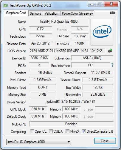 Das Asus K55VM-SX064VM ist mit zwei Grafikchips ausgerüstet: Dem in den Core i7-Prozessor integrierte Intel HD 4000-Grafikchip und dem separaten Nvidia GeForce GT 630M-Grafikchip mit 2 GB Arbeitsspeicher. Beide Grafikchips unterstützen DirectX 11.