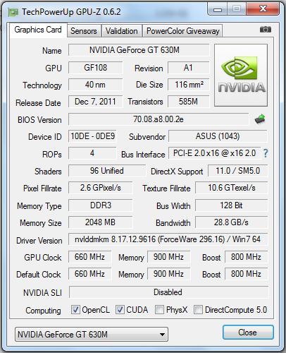 Das Notebook benutzt Nvidias "Optimus"-Technologie, d.h. der GeForce GT 630M-Grafikchip wird nur verwendet, wenn der integrierte Intel HD 4000-Grafikchip nicht genügend Leistung bietet. Diese Umschaltung geschieht vollautomatisch im Hintergrund. Zusätzlich hilft die Optimus-Technologie dabei, die Akkulaufzeit zu verlängern.