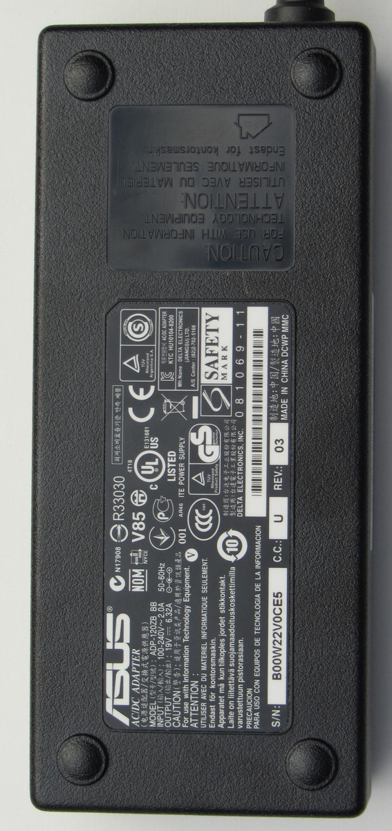 Asus liefert das Notebook mit einem 120 Watt-Netzteil und einem 50 Wh/4700 mAh-Akku aus. Darüber hinaus liegen ein dünnes, deutschsprachiges Handbuch und eine Treiber-CD (für Windows 7) bei.