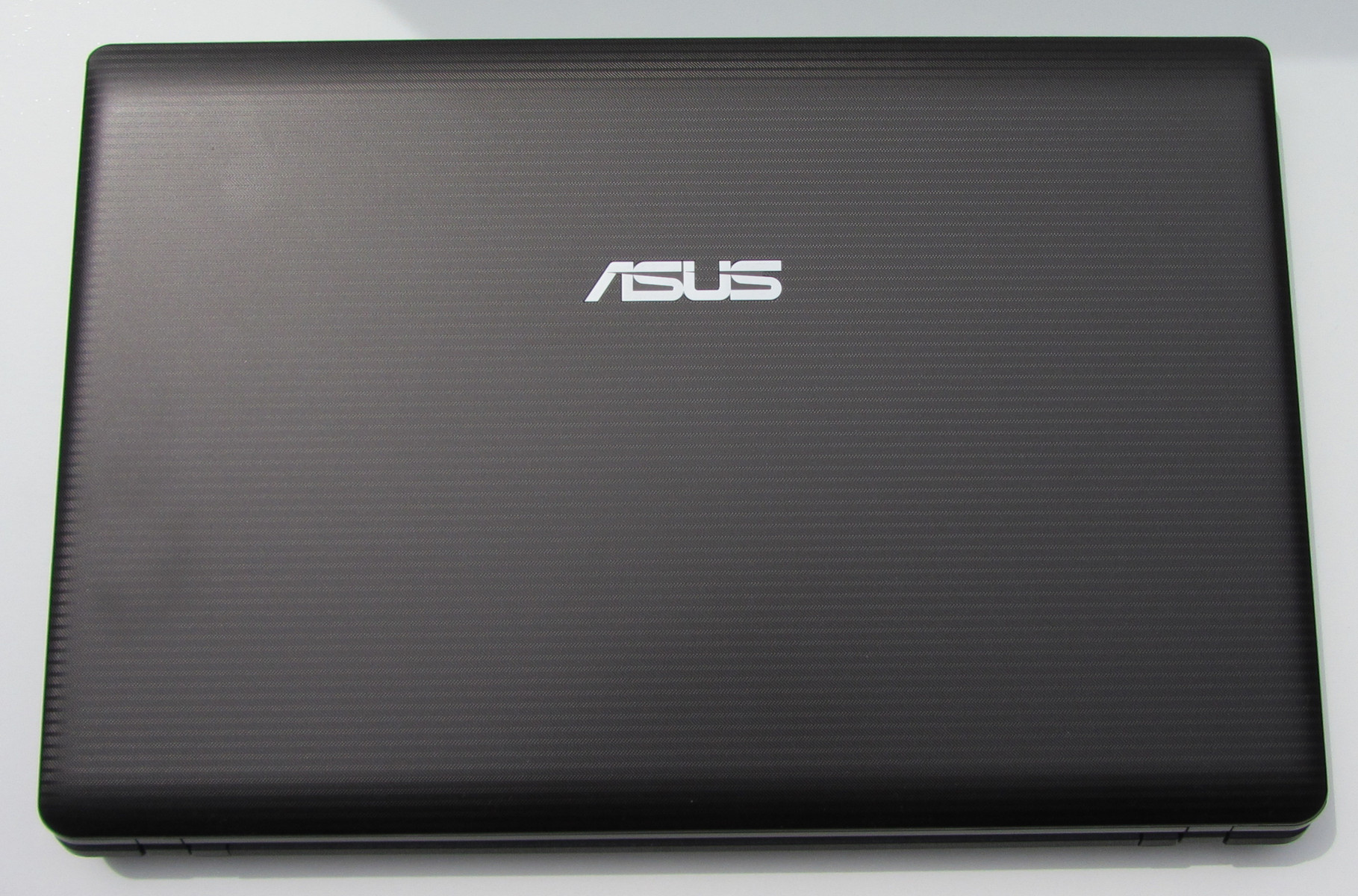 Das Gehäuse besteht überwiegend aus Kunststoff. Lediglich die Handablage ist aus Metall gefertigt. Hier unterscheidet sich das Gerät von dem Vorgänger Asus K53SV-SX131V. Dessen Gehäuse bestand überwiegend aus Metall. Sowohl der Displaydeckel als auch die Unterseite des Notebooks wurden mit einer Textur versehen, die Fingerabdrücke auf dem Gerät weitgehend verhindert bzw. vermindert. Auch kommt die Textur der Griffigkeit des Notebooks zu Gute.