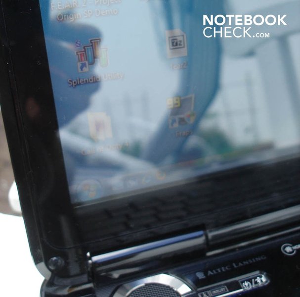 Das 16-zöllige Display im kinofreundlichen 16:9 Format besitzt eine HD-Auflösung von 1366x768 Bildpunkten. Da sich Asus leider für eine Hochglanzverspiegelung (Glare-Type) entschieden hat, spiegelt es jedoch schon bei geringer Sonneneinstrahlung sehr stark. So sollte bei Filmen immer für entsprechende Verdunklung gesorgt werden.