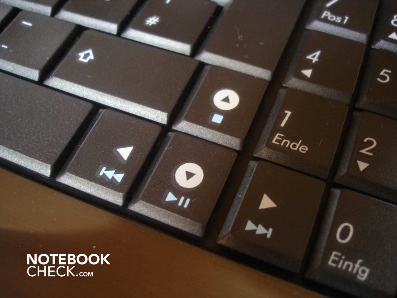 Die Tasten überzeugen mit einem gut definierten Druckpunkt und bieten eine schöne Größe. Nur die Pfeiltasten und die Tasten des Nummernblocks sind etwas schmäler wie der Rest geraten, was aber kaum stört. Bis auf Details ist die Tastatur zudem im Standardlayout aufgebaut. Leider besitzen die Tasten eine etwas ungewohnte Form. So sind sie nach links hin schräg abgeflacht, nach rechts hin aber kerzengerade. Daher bekommt man beim Tippen ständig den Rand der anderen Tasten zu spüren, was auf Dauer doch unangenehm sein kann. Die Fn-Taste zum Auslösen diverser Tastenkombinationen befindet sich vorbildlich rechts von der linken Strg-Taste. Unverständlich hingegen, warum Asus die Einfügen- respektive Entfernen-Funktion auf ein und dieselbe Taste gelegt hat.