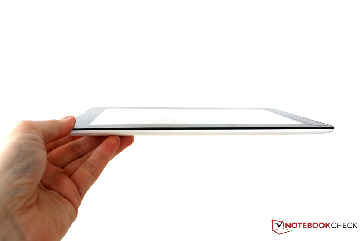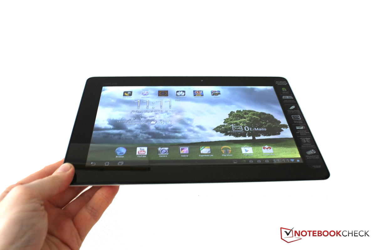 Das Gewicht ist für ein 10,1-Zoll-Gerät recht gering: 580 Gramm bringt das Testgerät auf die Waage. Damit ist es zusammen mit dem Lenovo IdeaTab A2109A eines der leichtesten Geräte im Vergleich.