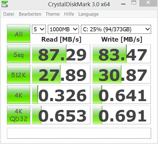 Die gefühlte Geschwindigkeit ist flott, aber, was Boot- und Ladevorgänge angeht, nicht rasant. Außerdem erzeugt die HDD zeitweise (längere Idle-Phasen) den einzigen Lärmpegel, was mit einer SSD vermieden werden könnte.