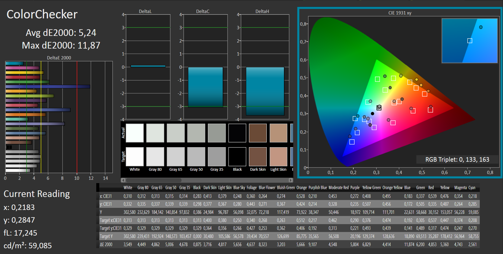 ΔE ColorChecker Calman: 5.24 | ∀{0.5-29.43 Ø4.78}